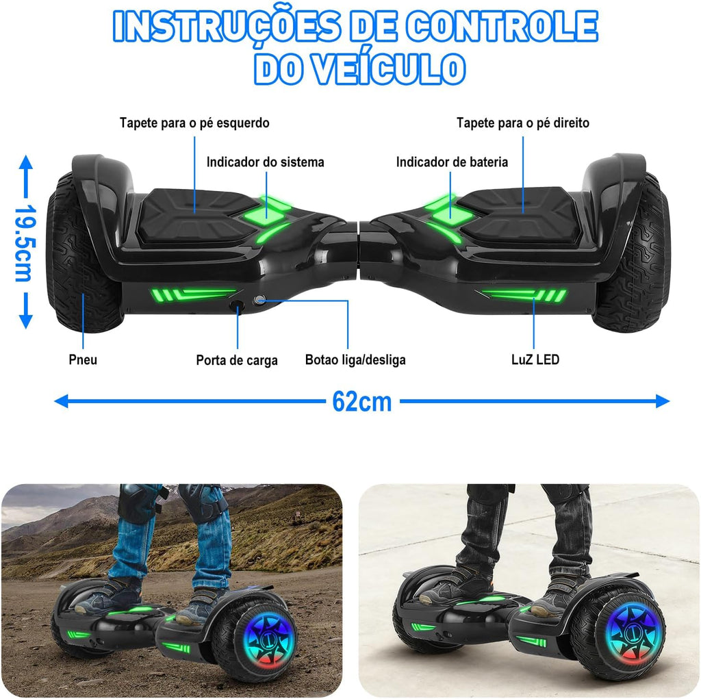 Descubra a liberdade sobre rodas com o hoverboard VentoEco equipado com motor duplo de 320W - a escolha inteligente para mobilidade urbana e aventuras outdoor. Nossos hoverboards à venda oferecem 50% mais potência que modelos convencionais, alcançando 12 km/h com total estabilidade em grama, asfalto ou terrenos irregulares.