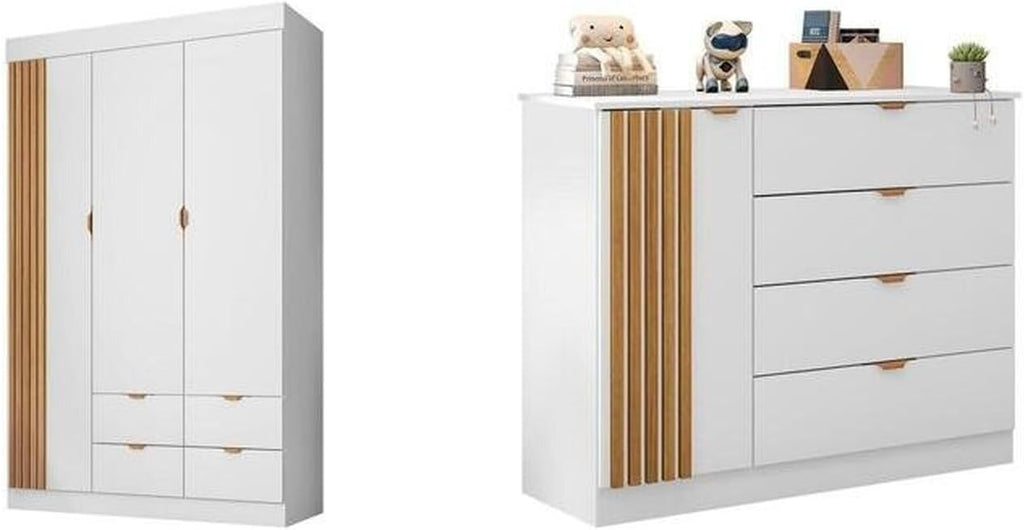 Quarto Infantil Completo Guarda-Roupa 3 Portas 4 Gavetas com Cômoda 100% MDF Ayla Branco. Adicione sofisticação e funcionalidade ao quarto do seu bebê com o Quarto Infantil Completo Guarda Roupa 3 Portas 4 Gavetas com Cômoda Ayla 100% MDF Branco. Este conjunto elegante e prático é a solução perfeita para organizar e decorar o espaço do seu pequeno.